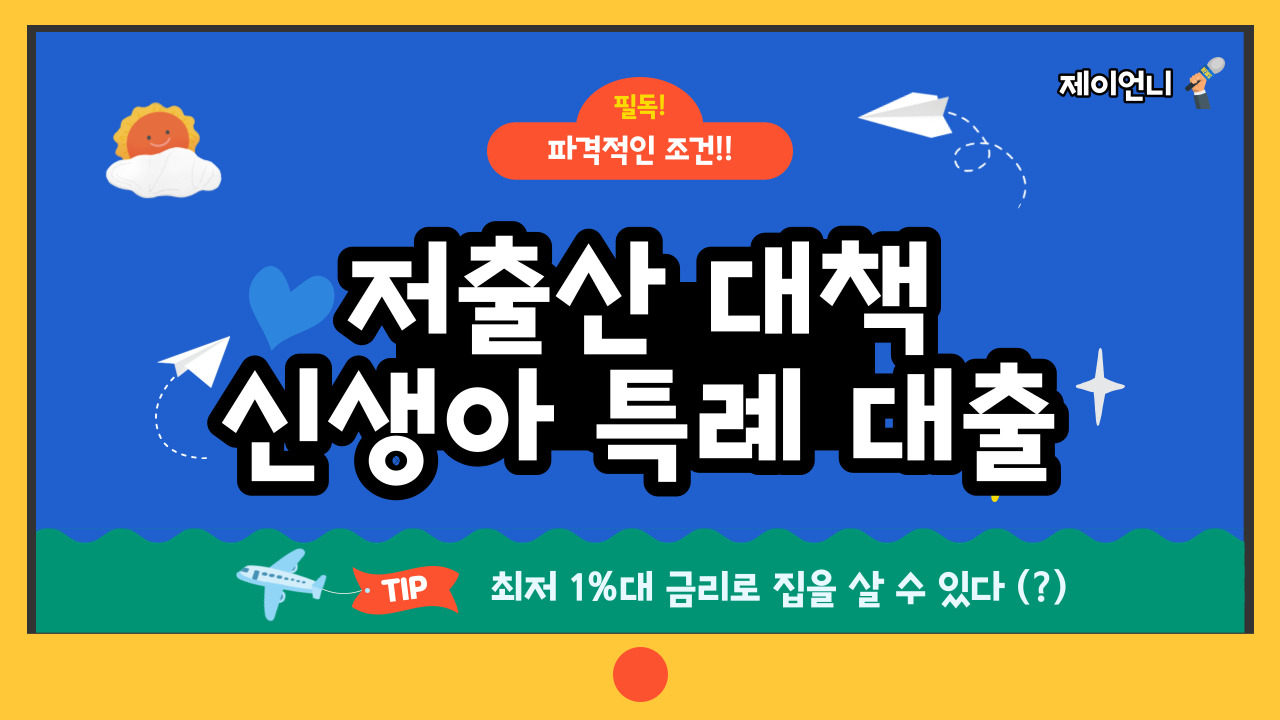 신생아 특례대출 최저 1% 금리로 집을 살 수 있습니다.